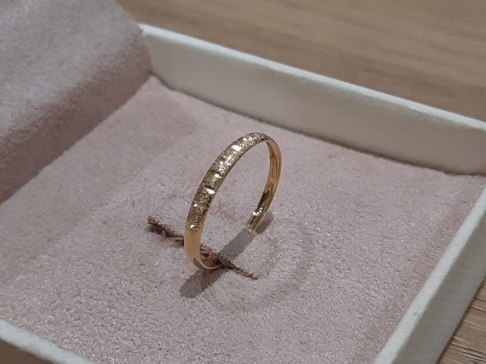 ANEL ESTILO MEIA ALIANÇA, FOSCA, SEM PEDRAS, ARO 18, EM OURO 18K