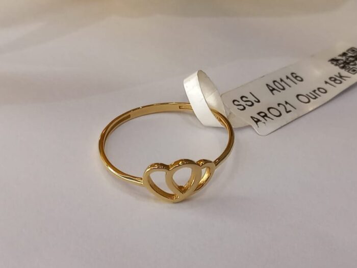 ANEL MINIMALISTA, CORAÇÕES VAZADOS, RESISTENTE, MACIÇO, ARO 21, EM OURO AMARELO 18K