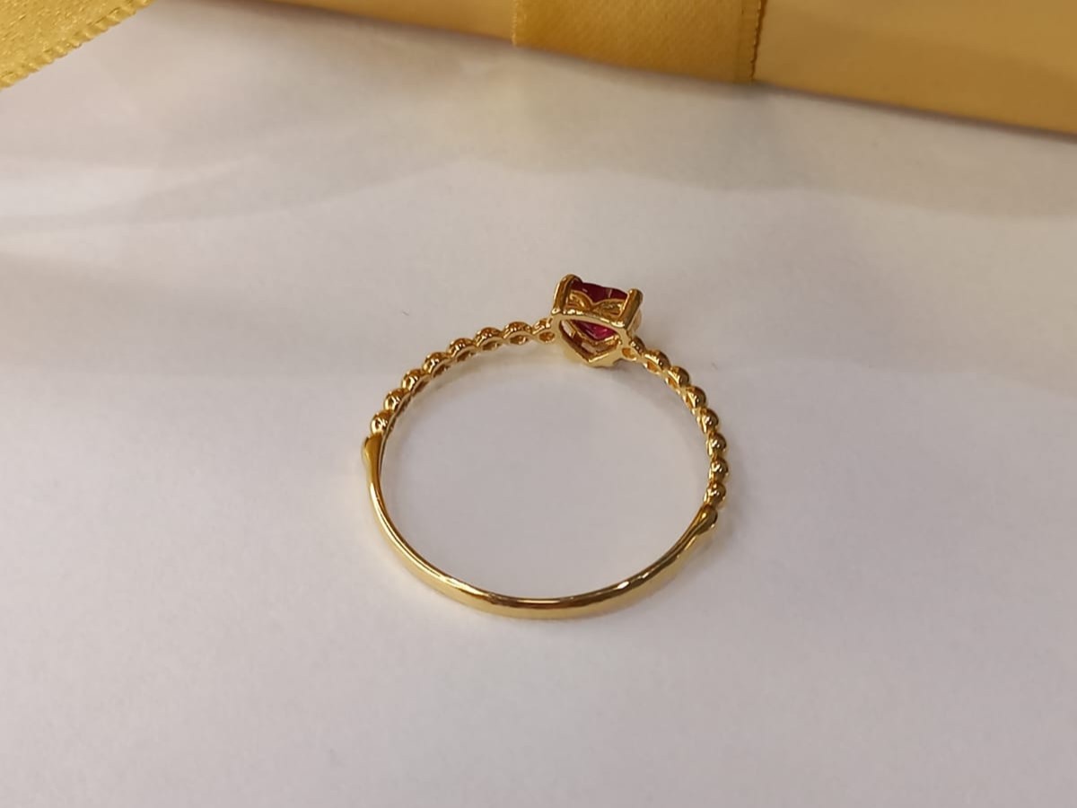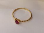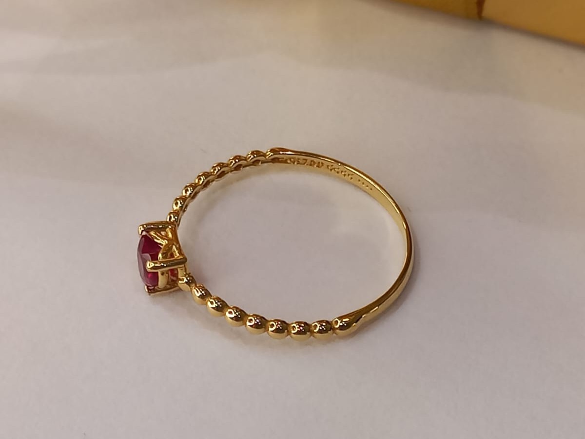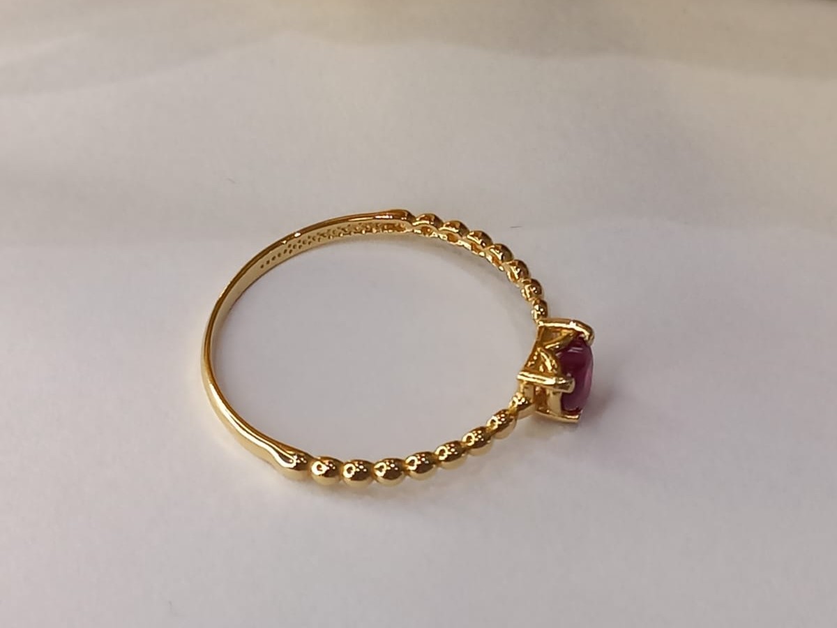 ANEL MINIMALISTA, DELICADO, COM ZIRCÔNIA VERMELHA, ARO 18, EM OURO AMARELO 18K