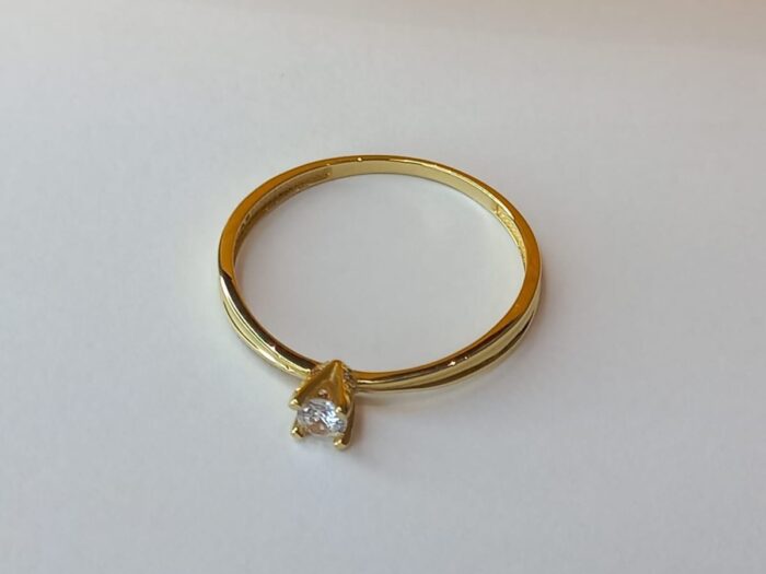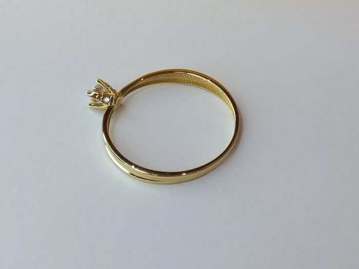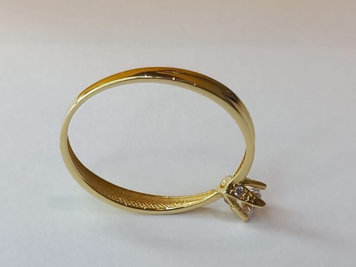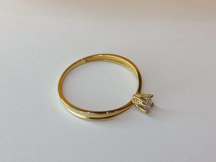 ANEL SOLITÁRIO, CRAVEJADO COM PEDRAS DE ZIRCÔNIAS NO CÁLICE, ARO 18, EM OURO AMARELO 18K