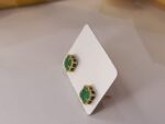 BRINCOS TREVO, O PAR, PEDRA MALAQUITA, 0.7MM, TARRAXAS BORBOLETA, (±) 1.0, EM OURO AMARELO 18K