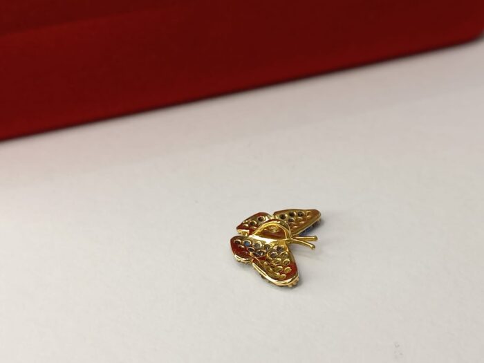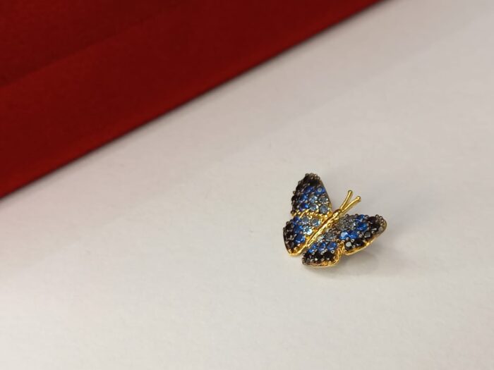 PINGENTE BORBOLETA, COM ZIRCÔNIAS, TONS DE AZUIS, PEQUENO, 13MM X 10MM, EM OURO AMARELO 18K