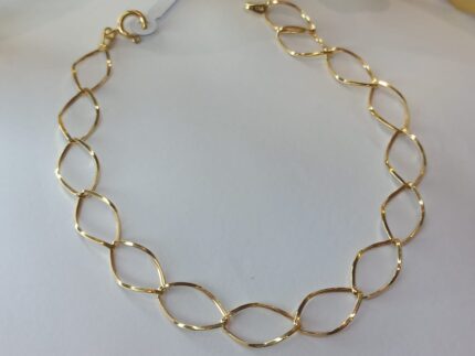 PULSEIRA UNISSEX MODELO ELOS ALONGADOS, FINOS E OCADA, 21CM X 3,5MM EM OURO AMARELO 18K