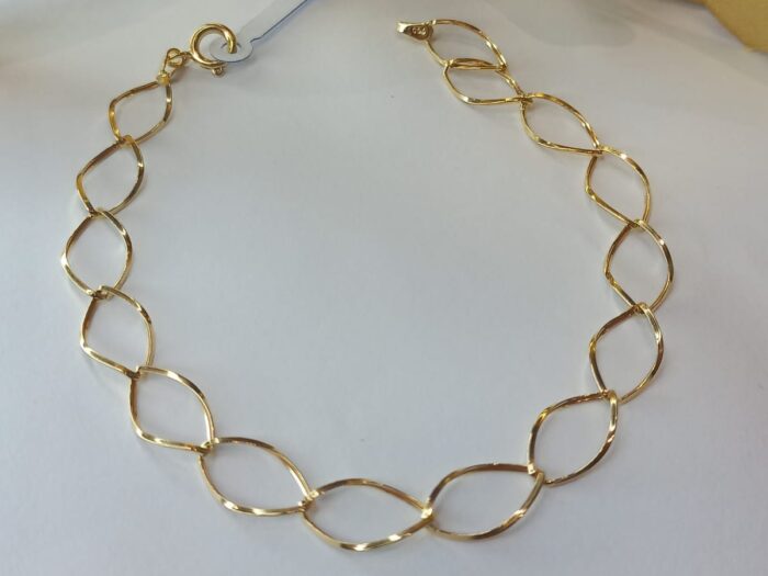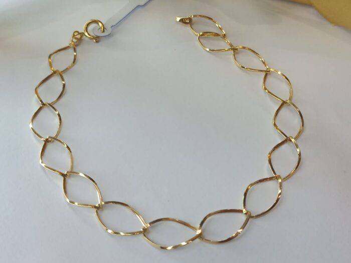 PULSEIRA UNISSEX MODELO ELOS ALONGADOS, FINOS E OCADA, 21CM X 3,5MM EM OURO AMARELO 18K