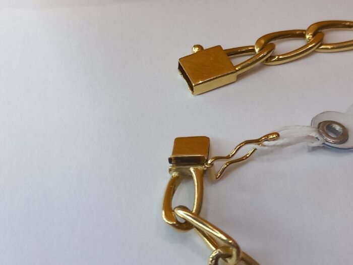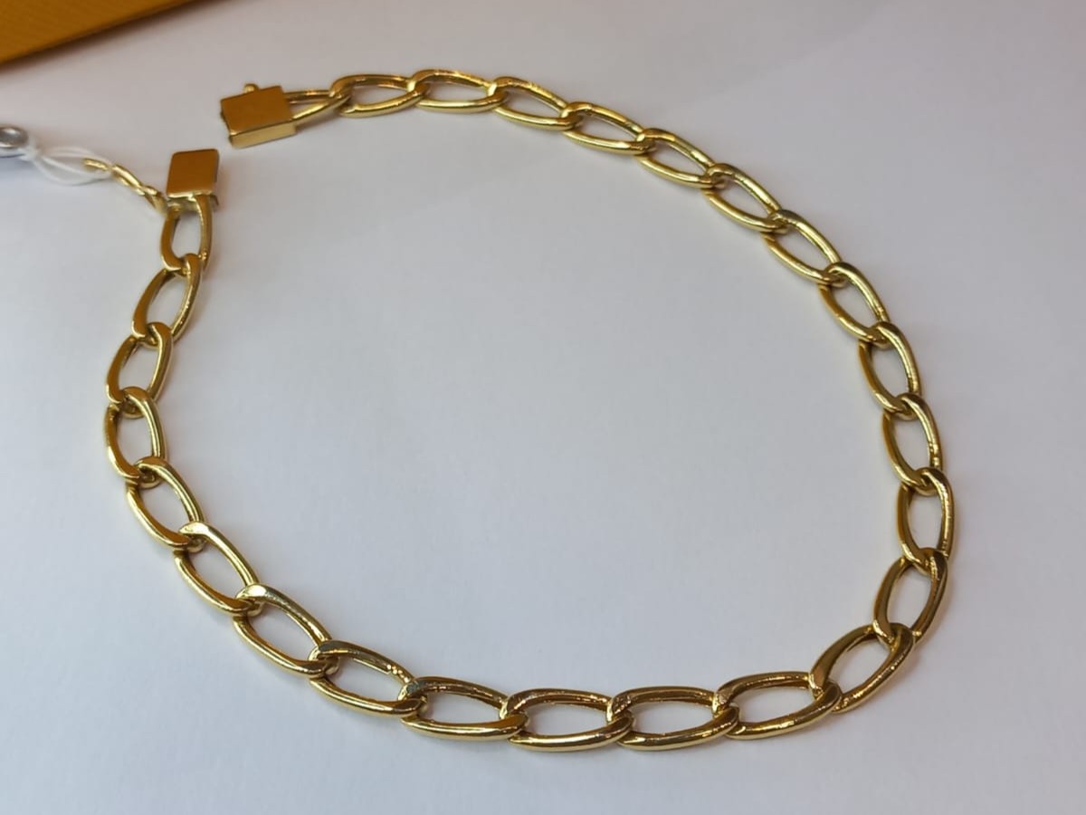 PULSEIRA UNISSEX MODELO GRUMET, ALONGADOS OCADOS, 0.5MM X 21.5MM, EM OURO AMARELO 18K