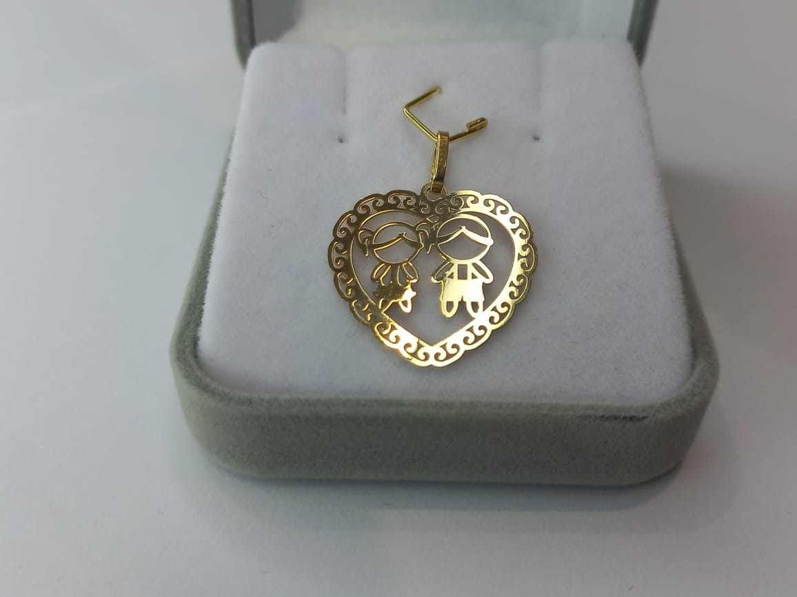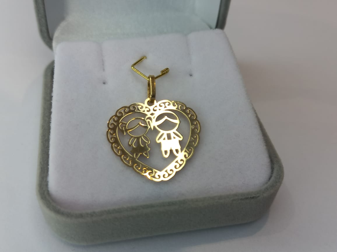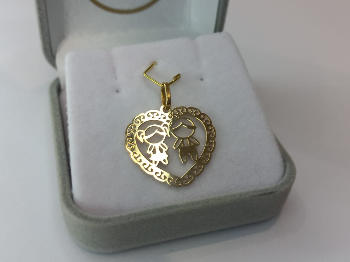 PINGENTE CASAL DE FILHOS NO CORAÇÃO, PEQUENO, 2.5CM X 2.1CM DE LARGURA, EM OURO 18K